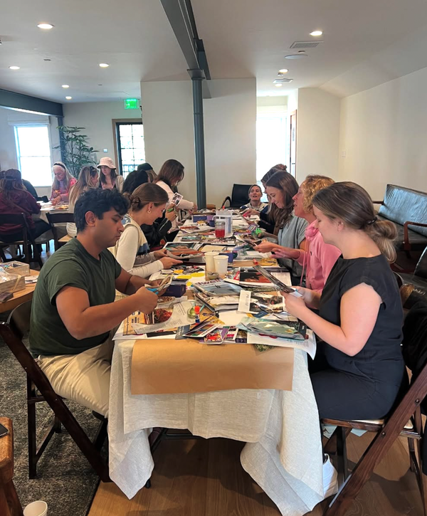 Surrounded by the warmth of the Godmothers community, guests layered images, words, and textures onto their boards - crafting personal collages that reflected their hopes and truths. What made it special was the balance: moments of quiet reflection met with bursts of laughter, conversation, and discovery.