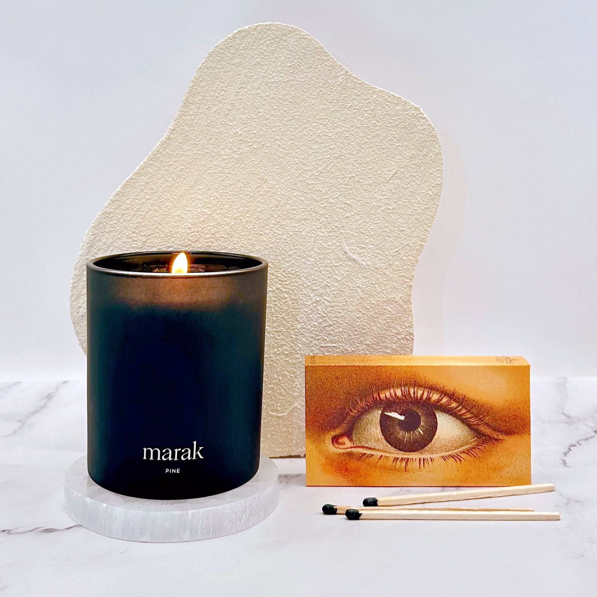 Each box is crafted with intention and a touch of magic - complete with the full Explorer of the Soul tarot deck, the Marak candle of your choice, a luminous 4" selenite disc to cleanse and display your deck or candle, and an oversized artful matchbox to spark your flame.